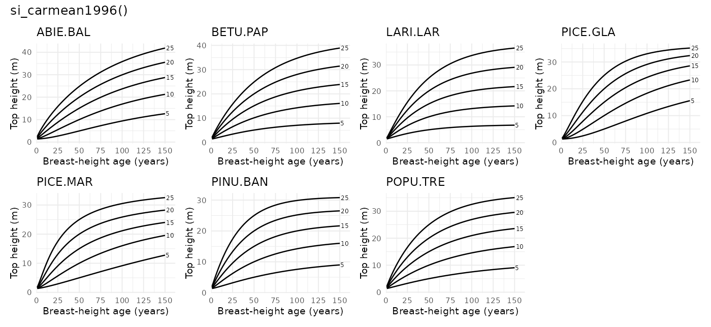 si_carmean1996() - Description: Carmean (1996) northwest Ontario site-index model set Carmean (1996)