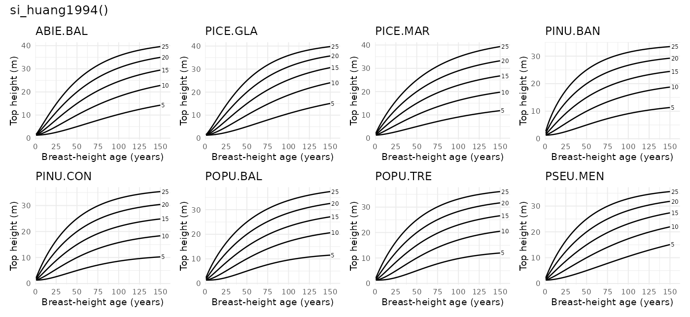 si_huang1994() - Description: Huang et al. (1994) Alberta polymorphic site-index model set Huang et al. (1994)