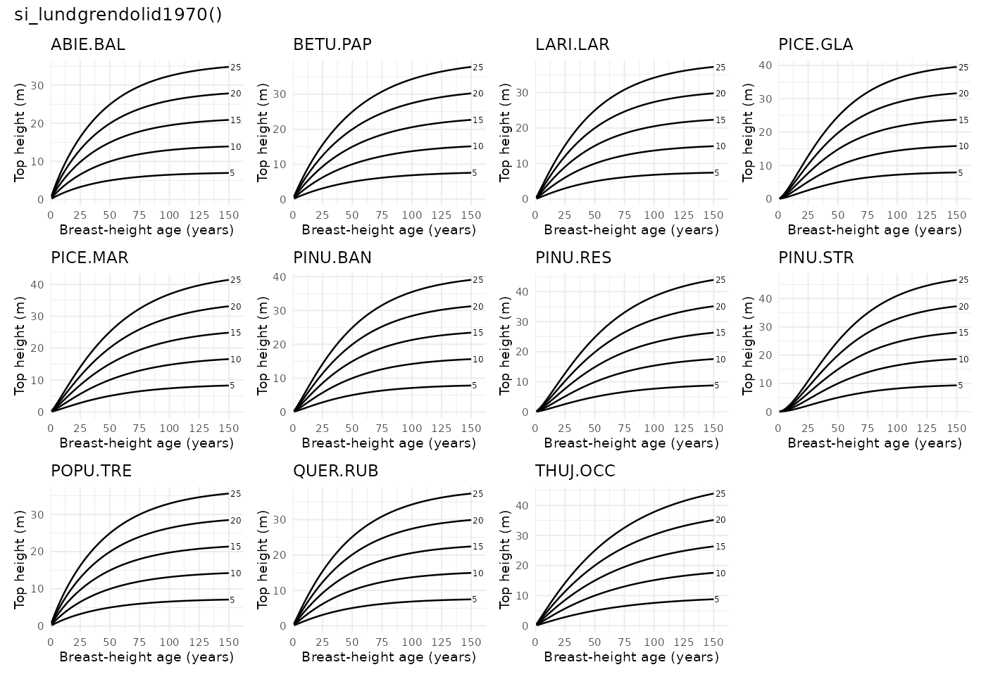 Site index models included in the package