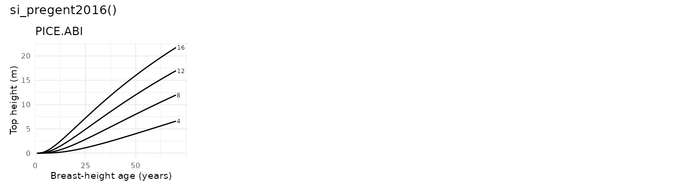 si_pregent2016() - Description: Pregent et al. (2016) Norway spruce plantation site-index model Pregent and Auger (2016)