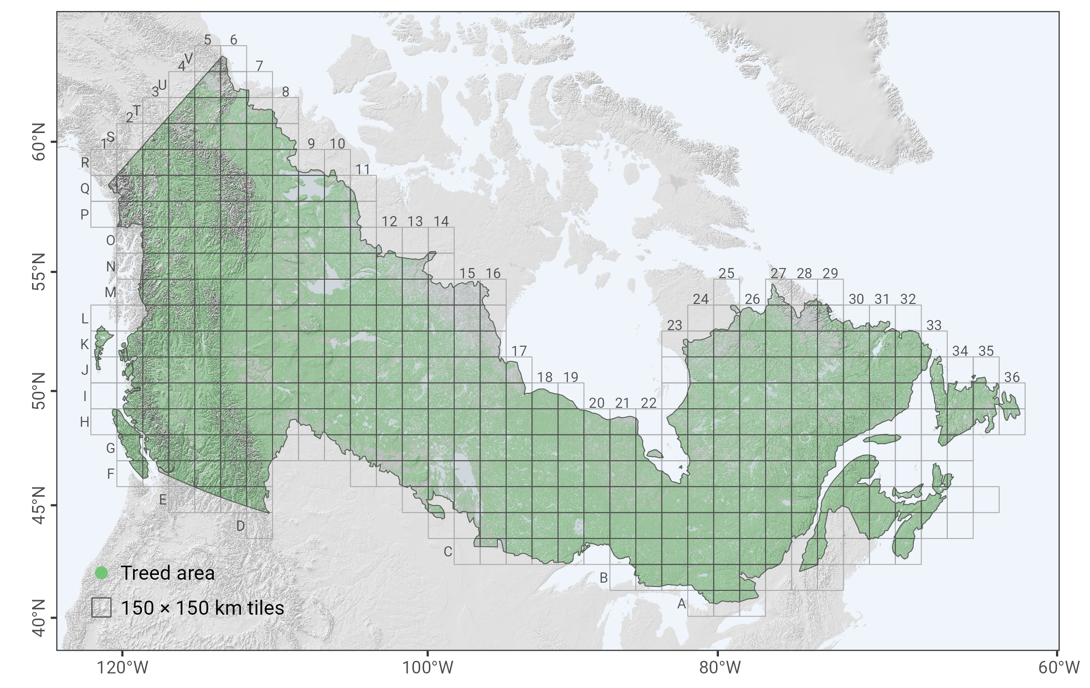 The RSYC models are both species-specific and tile-specific, meaning each combination of species and geographic tile may have its own yield curve. A full index of available species–tile combinations is included in the package and can be accessed programmatically. Additionally, the spatial distribution of tiles with available models is shown in the figure below.